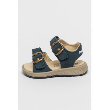Sandale din piele nabuc cu segment cu inchidere velcro