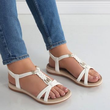 Sandale dama Albe din Piele Ecologica Aloina